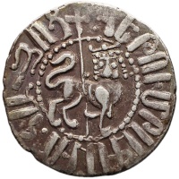 Reverse: Queen Zabel and king Hetoum holding a long cross.