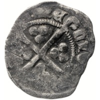 Reverse: long cross pattee, bottom limb ending in crozier, tri-pellets in each inner angle, beaded circles and legend
