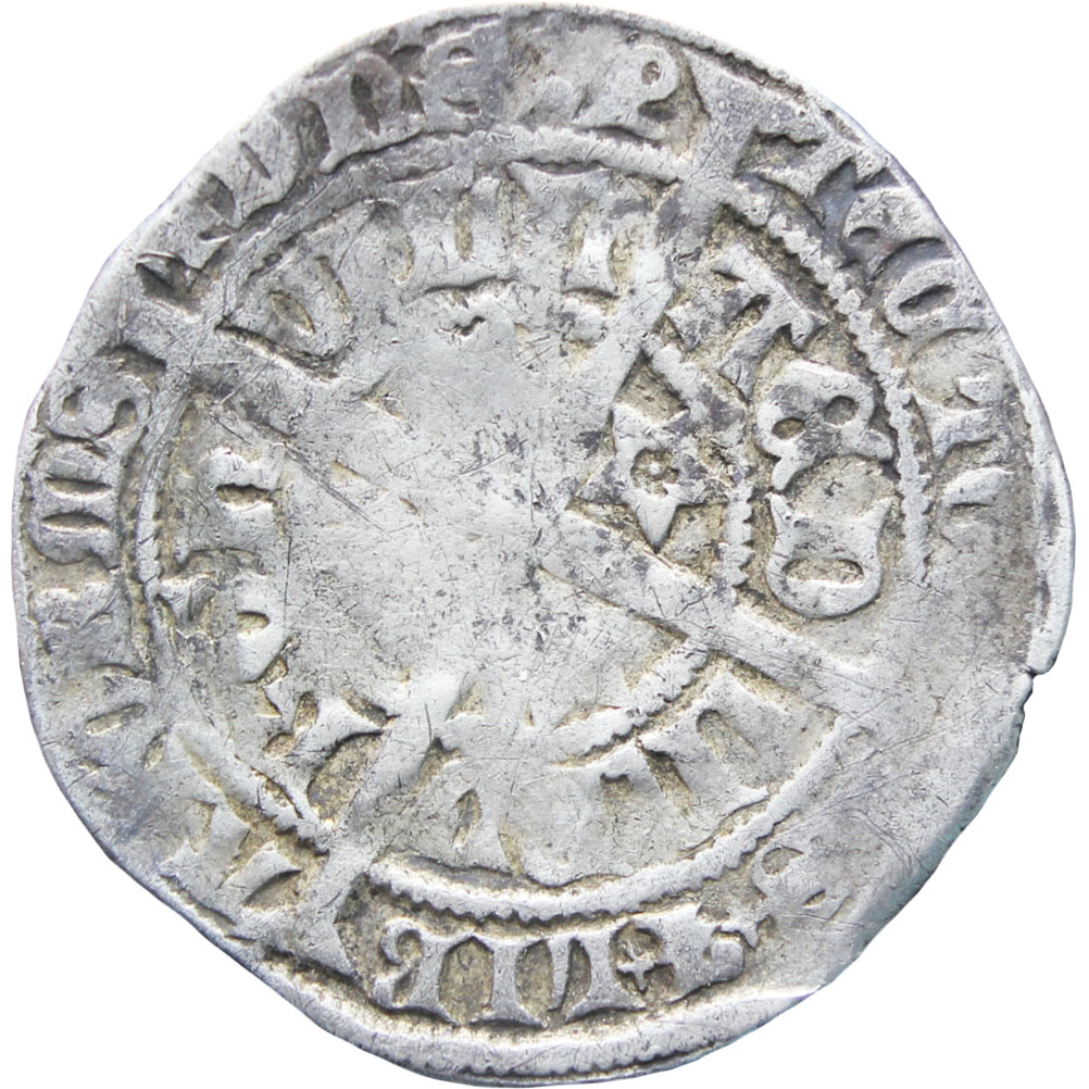 Obverse: crowned head of the King Robert II facing left with sceptre at left