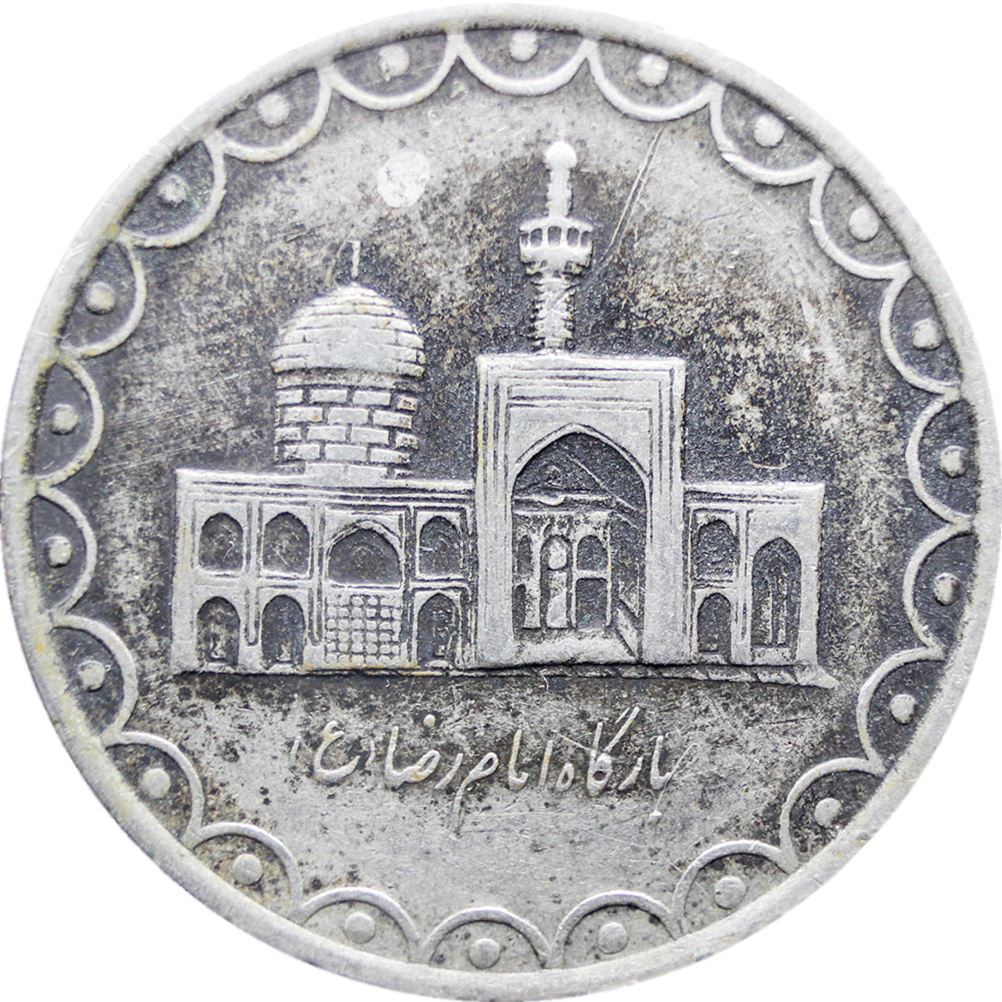 Obverse: Shrine of Imam Reza in middle and name below
