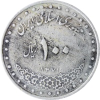Reverse legend: “جمهوری اسلامی ايران ١٠٠ ریال ۱۳۷۱”