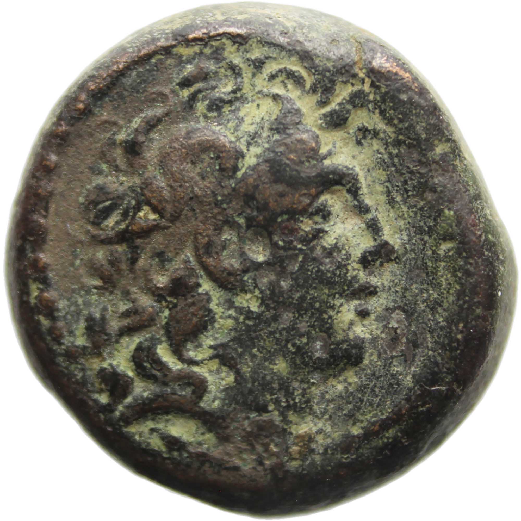 Reverse: spiked Macedonian helmet adorned with goat horn; in inner left field, star.