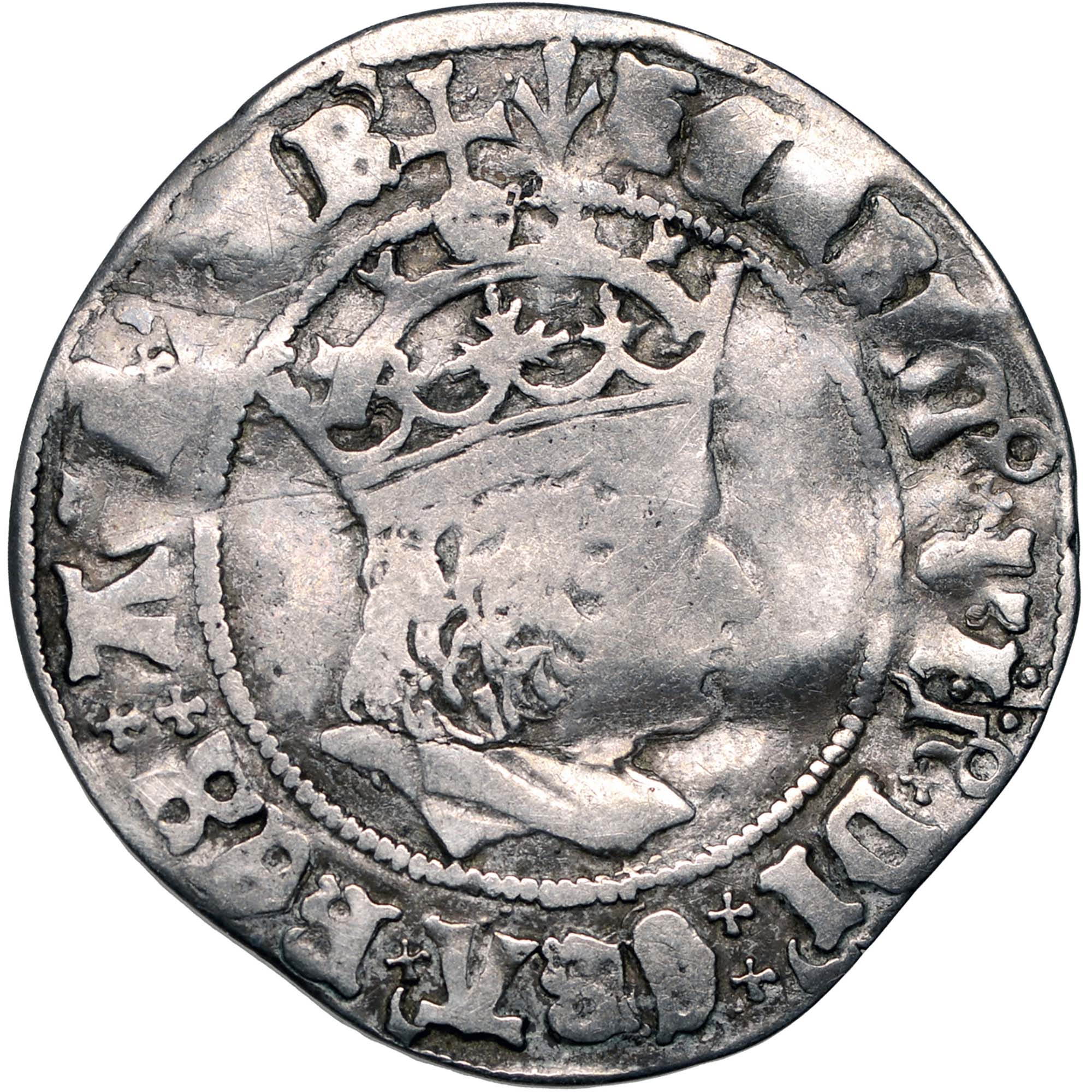 Obverse: Crowned and draped bust of Henry VII facing right. Regular type, Pheon