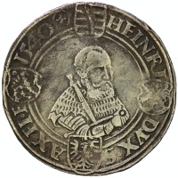 Obverse legend: “IOHAN FRI • LE C • DVX • S AX • FI • F” Reverse: armoured bust right Reverse legend: “HENRI • DVX • S AX • FI • F • 1540” Denomination: thaler (taler) Country: Germany Sachsen Ruler: Johann Friedrich I and Heinrich. Elector and Duke Year: 1540 Metal: silver Weight approx.: 28.59 g Diameter approx.: 40 mm Authenticity unconditionally guaranteed !