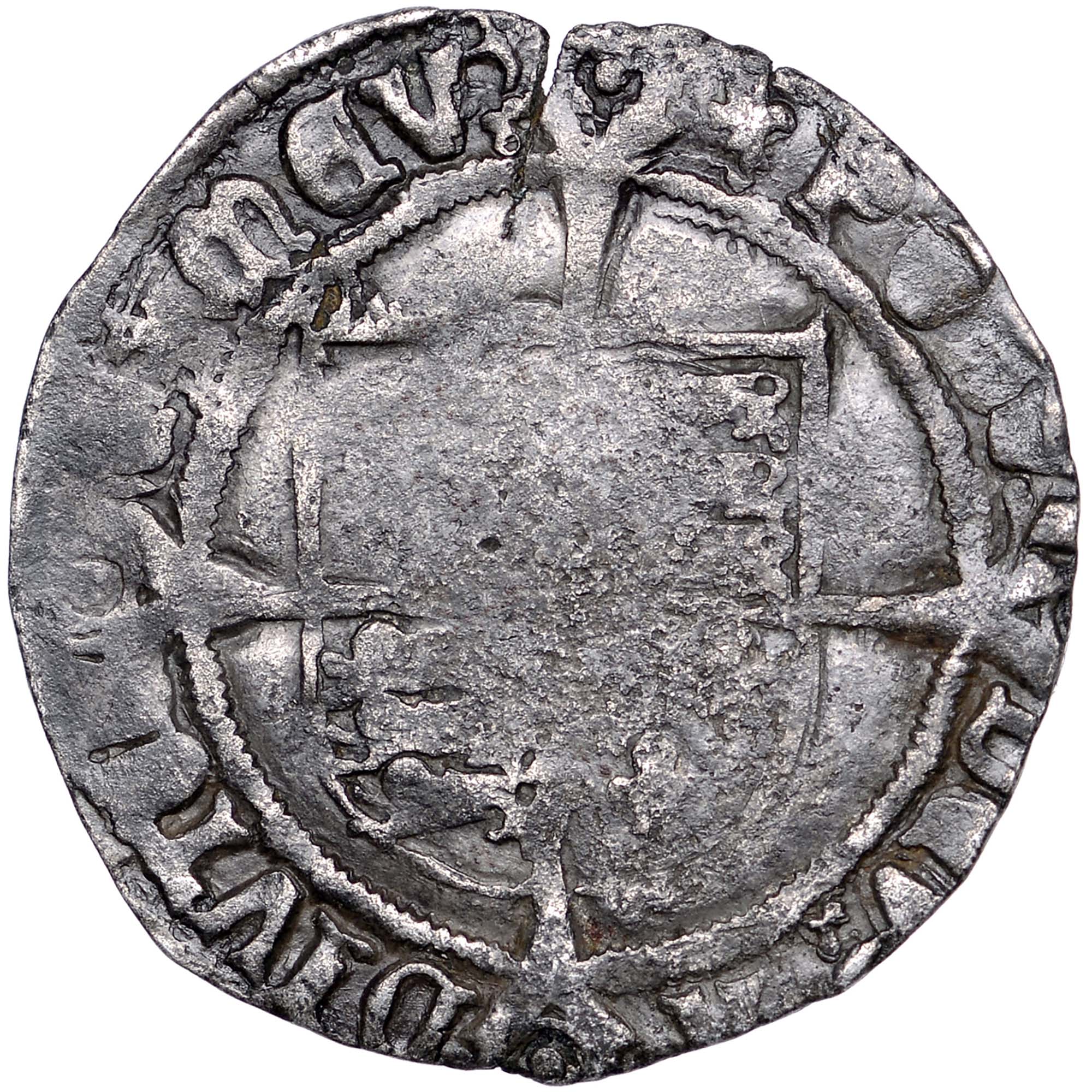 Reverse: Quartered shield of arms over long cross fourchée, legend around