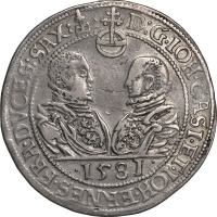 Obverse: figures of 2 dukes facing each other, small imperial orb above, date in exergue.