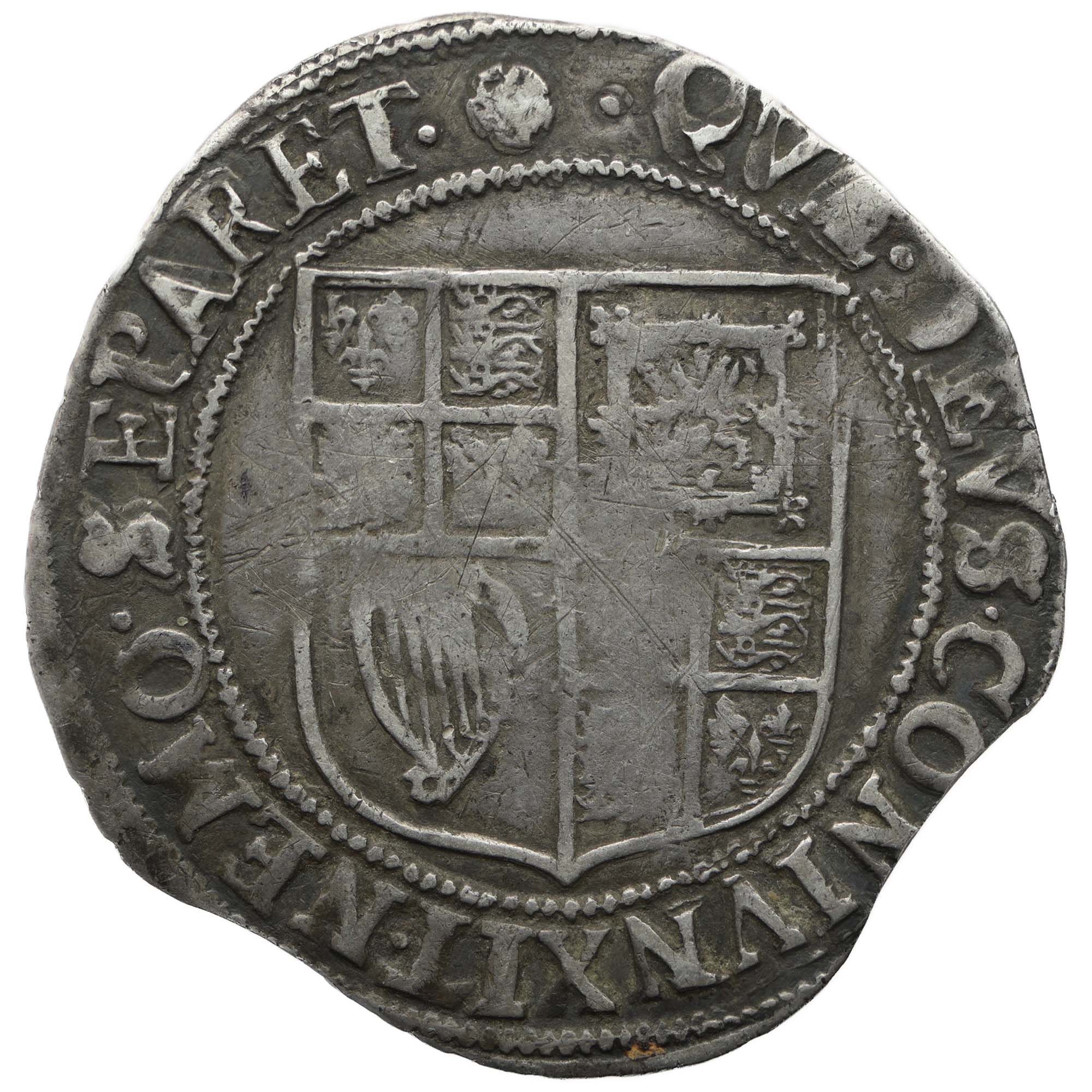 Reverse: Shield divided into quarters, different design in each. Beaded circle surrounding, lettering outside