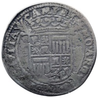 Obverse: Crowned Spanish coat of arms atop a Burgundian cross