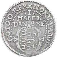 Reverse legend: “NORV : VAND GOTO : Q : REX 1 MARCK DANSKE”