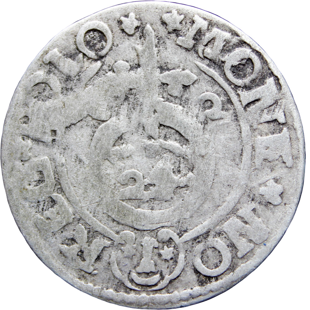 Reverse: 24 within orb dividing date 1622 = 22 (Sas coat of arms with open shield)