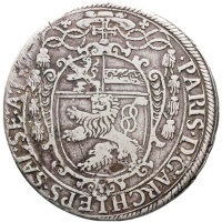 Obverse: Ornate ovale shield below a cross and a cardinal's hat. Top third arms of Salzburg and below arms or the archbishop. Legend around.