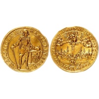 Bavaria, Ducat, Munich 1645. On the new fortification of the city of Munich. Hahn 121, Friedberg 197. 3.46 g