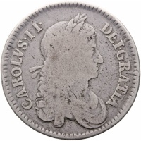 Obverse: laureate and draped bust of King Charles II right, legend around.