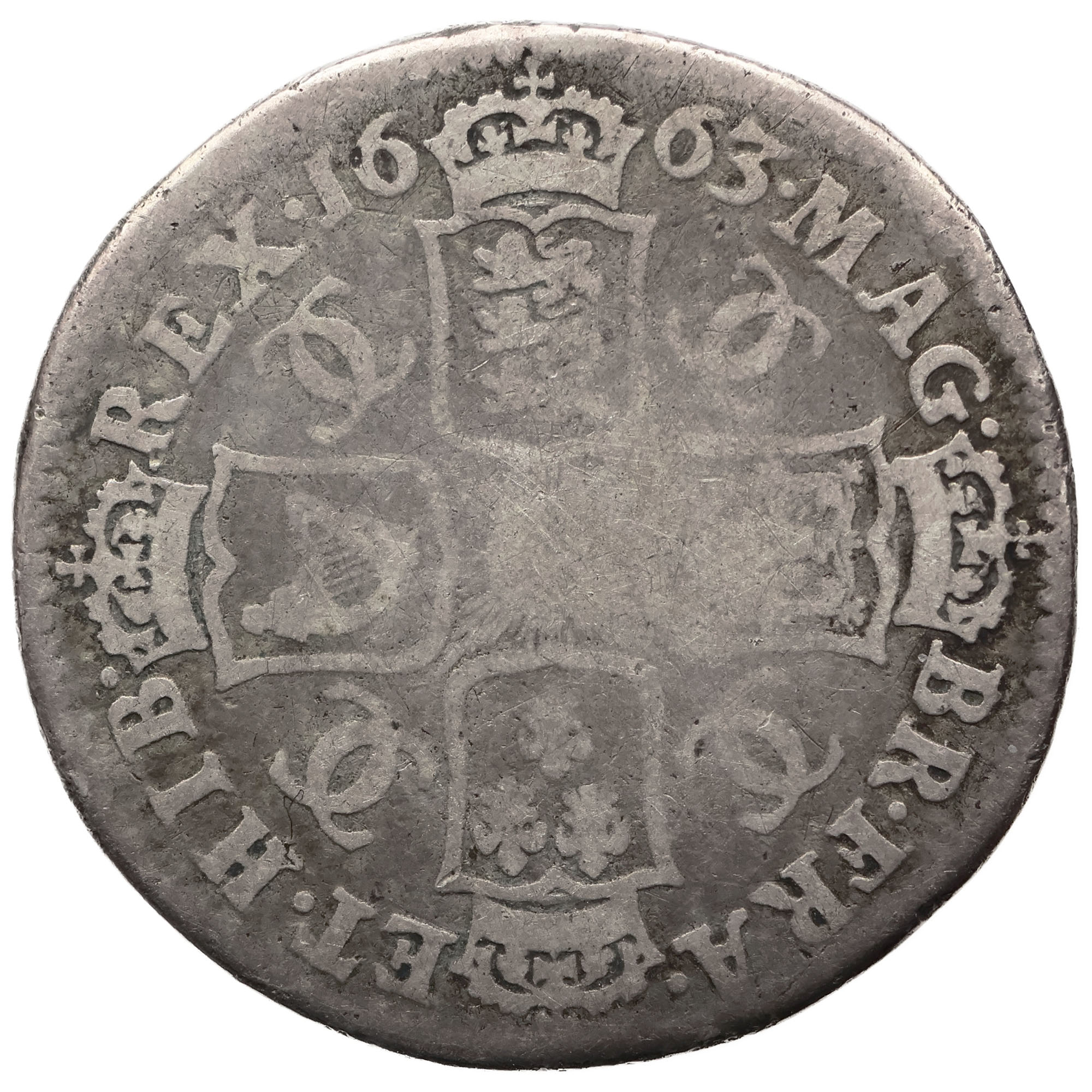 Reverse legend: MAG· BR·FRA· ET·HIB REX·16 63·
