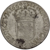 1664 Écu France Louis XIV Rennes Mint Silver Coin