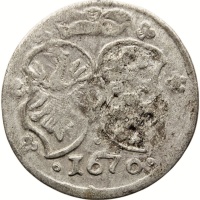 Reverse: 2 ornately shaped adjacent shields of arms (Silesia to the left, Brieg to the right), crown above, date below.