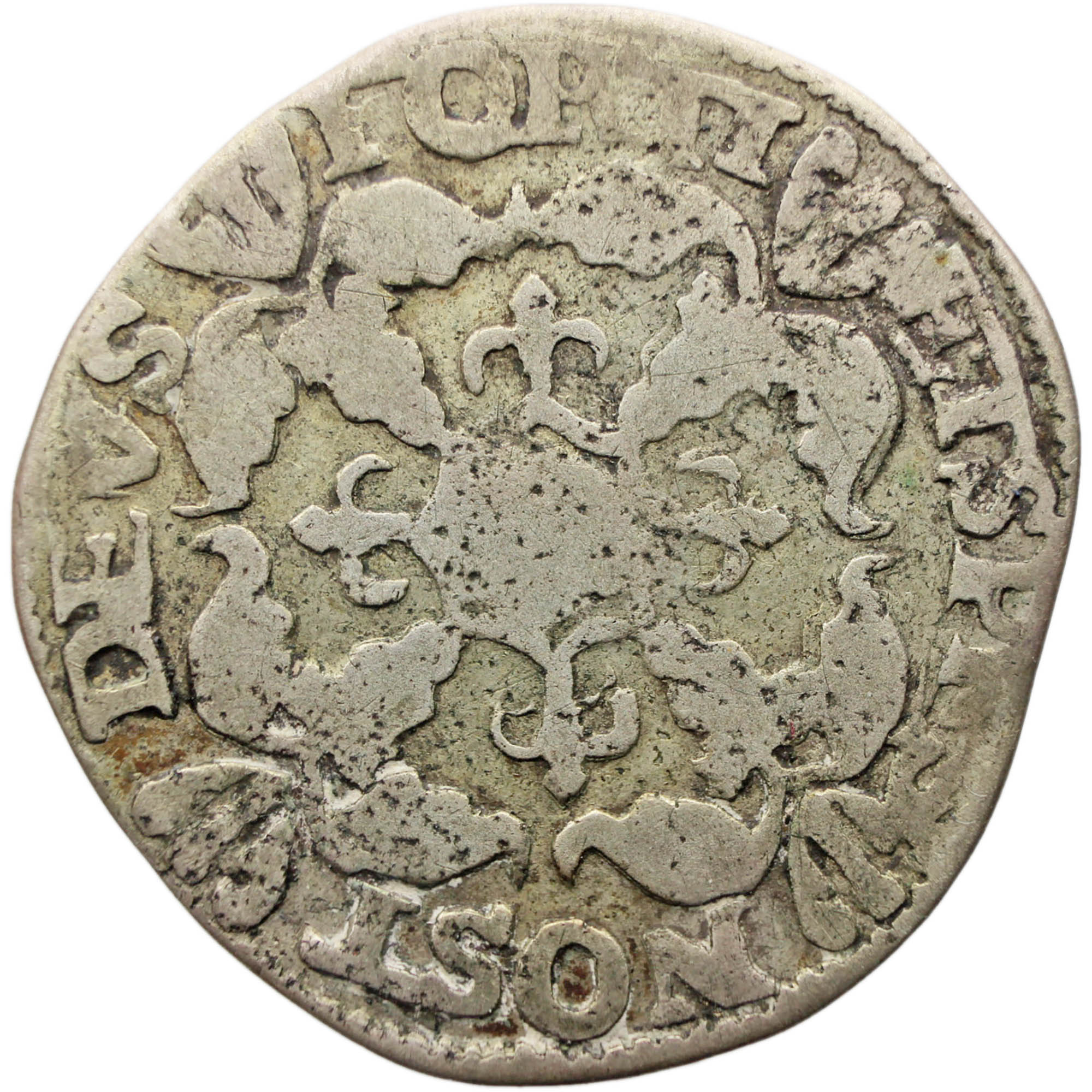 Reverse legend: DEVS FORTI ET.SPES NOSTR