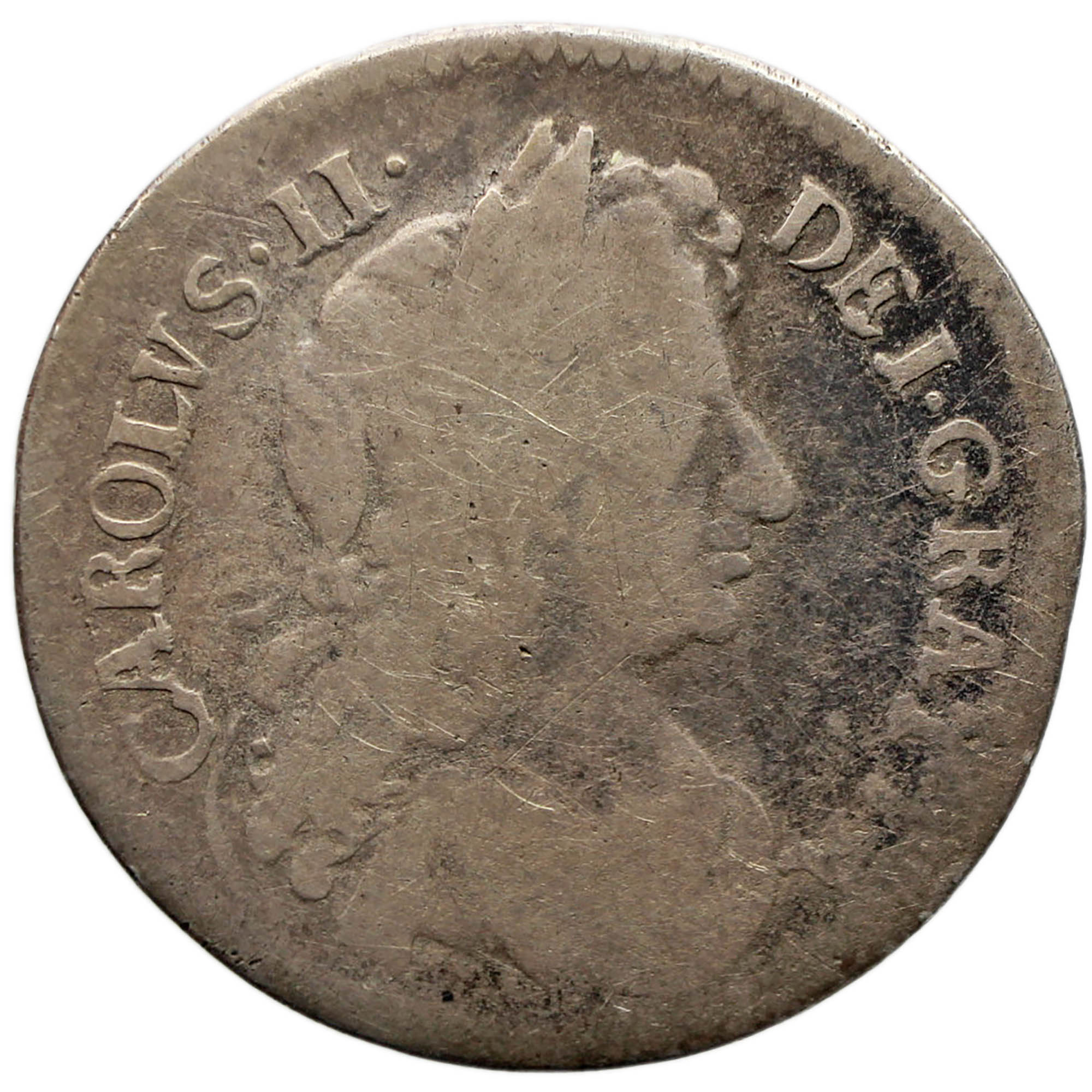 Obverse: Laureate and draped bust of King Charles II right, legend around.