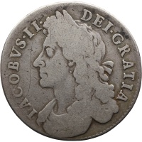Obverse: First laureate and draped bust of King James II left, legend around.