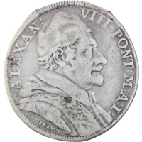 1690 Italian States Papal Vatican Pope Alexander VIII silver Testone 30 Baiocchi coin