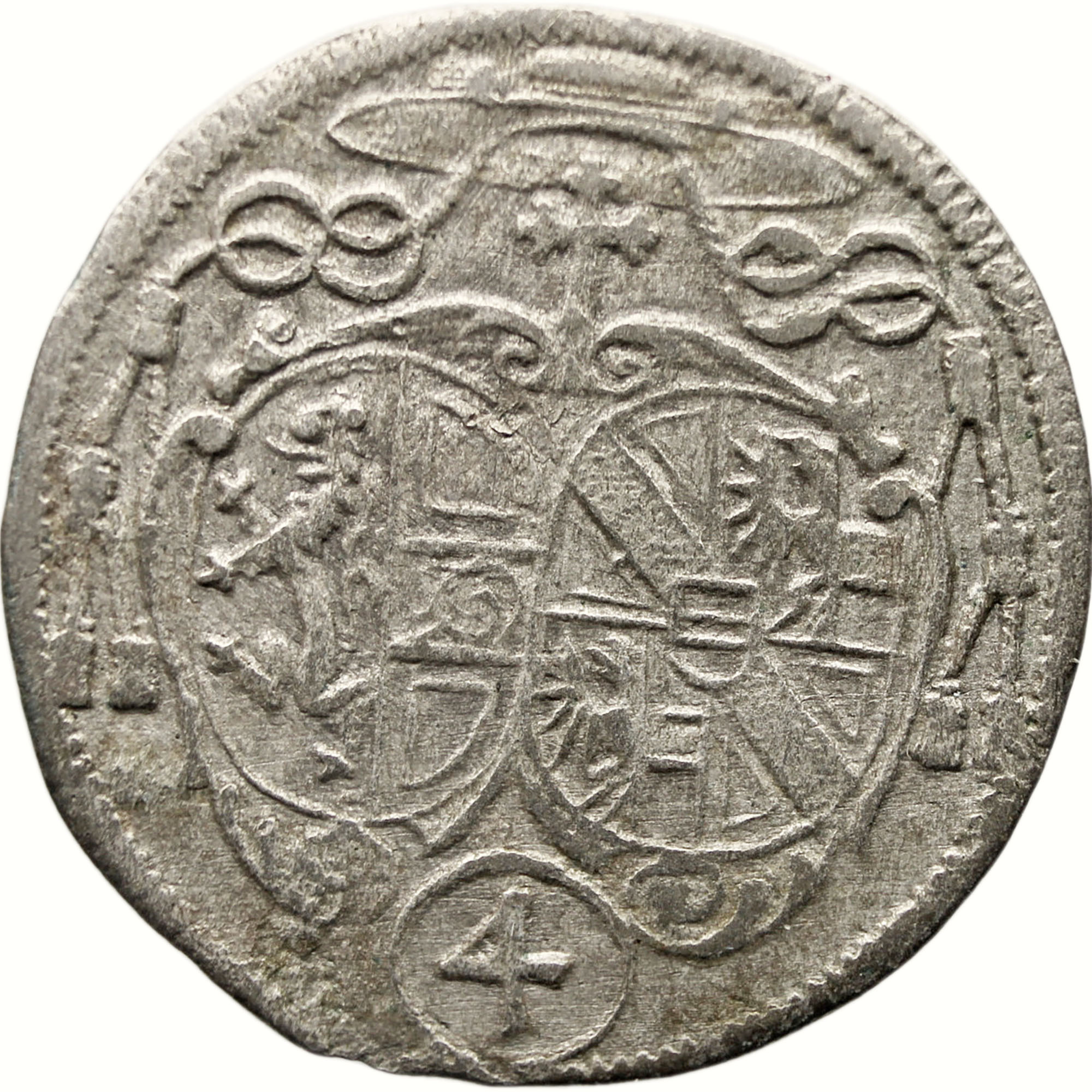 Obverse: Archbishop's hat above 2 ornated shields, left the arms of Salzburg and Austria, right the Bishop's arms. Value below in a circle.