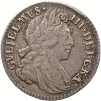 Obverse: Laureate and draped bust of King William III right, legend around.
