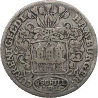 Obverse legend: HAMBURGER CURRENT GELDT 8 SCHILL I.H.L. 1726
