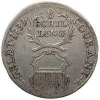 Obverse legend: 8 SCHIL LING COURANT GELDT 1731 JJJ