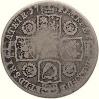 Reverse: Crowned cruciform shields with central Garter star, divided date above, legend around.