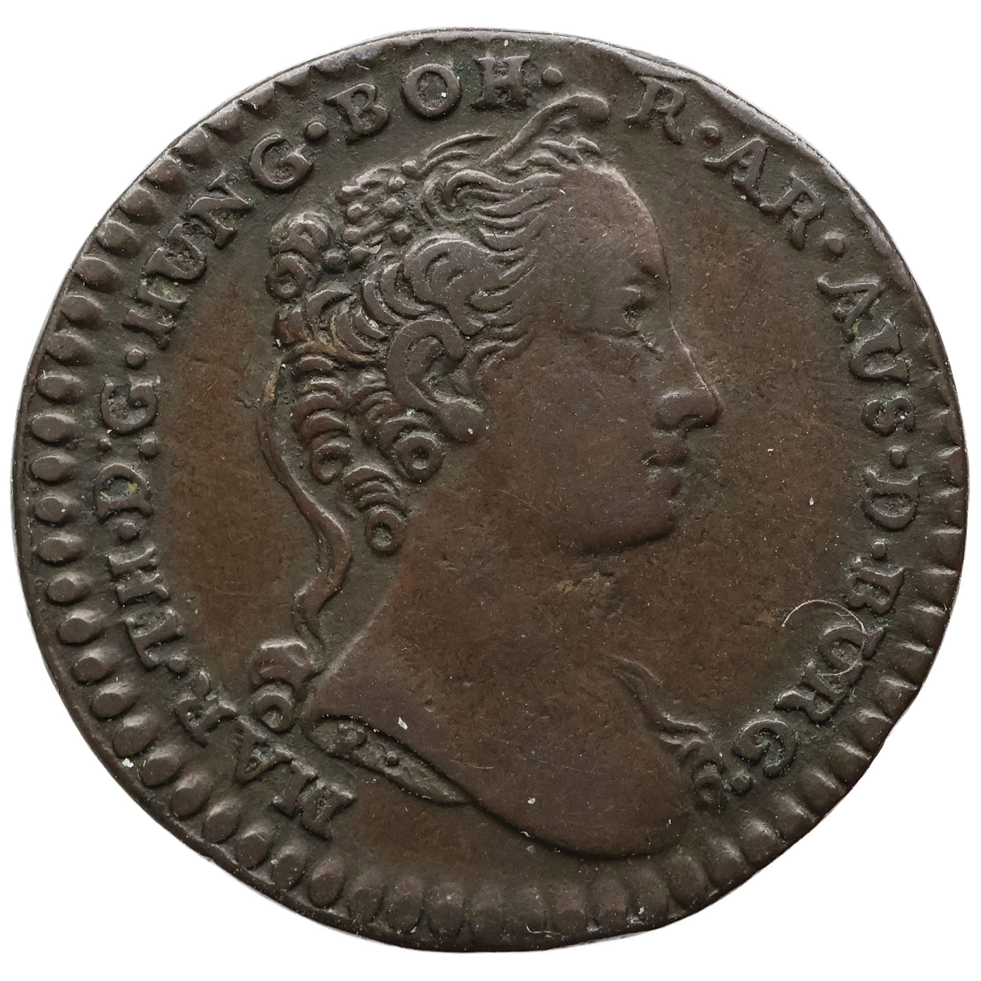 Obverse: Young portrait of Maria Theresia of Habsburg facing right.