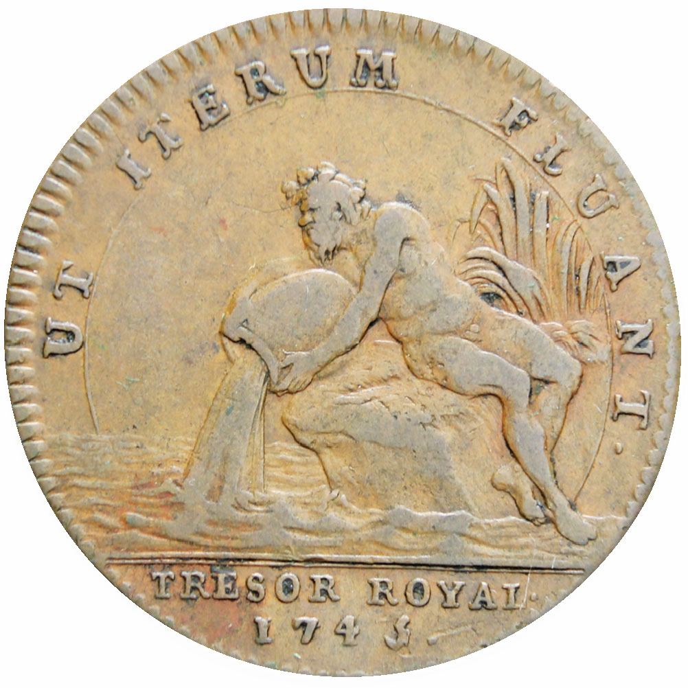 Reverse legend: “UT ITERUM FLUANT. TRESOR ROYAL 1745”