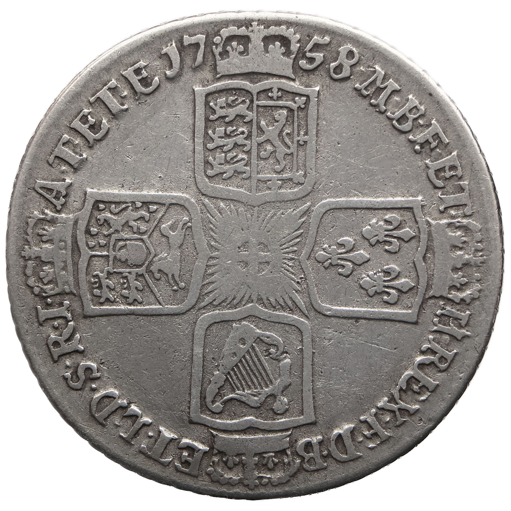 Obverse: Older laureate and draped bust of King George II left, legend around.