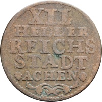 Reverse legend: “XII HELLER REICHS STADT ACHEN”
