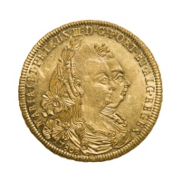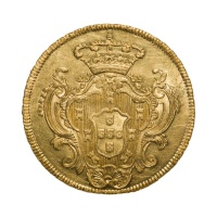 A 1780 Bahia gold coin of 6,400 Reis from the reign of D. Maria I and D. Pedro III, Brazil (Colonial), weighing 14.30 g with a 31.75 mm diameter, in XF+/aUNC condition.