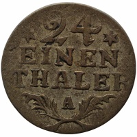 Reverse legend: “✱ 24 ✱ ꟾ EINEN ꟾ THALER ꟾ A”