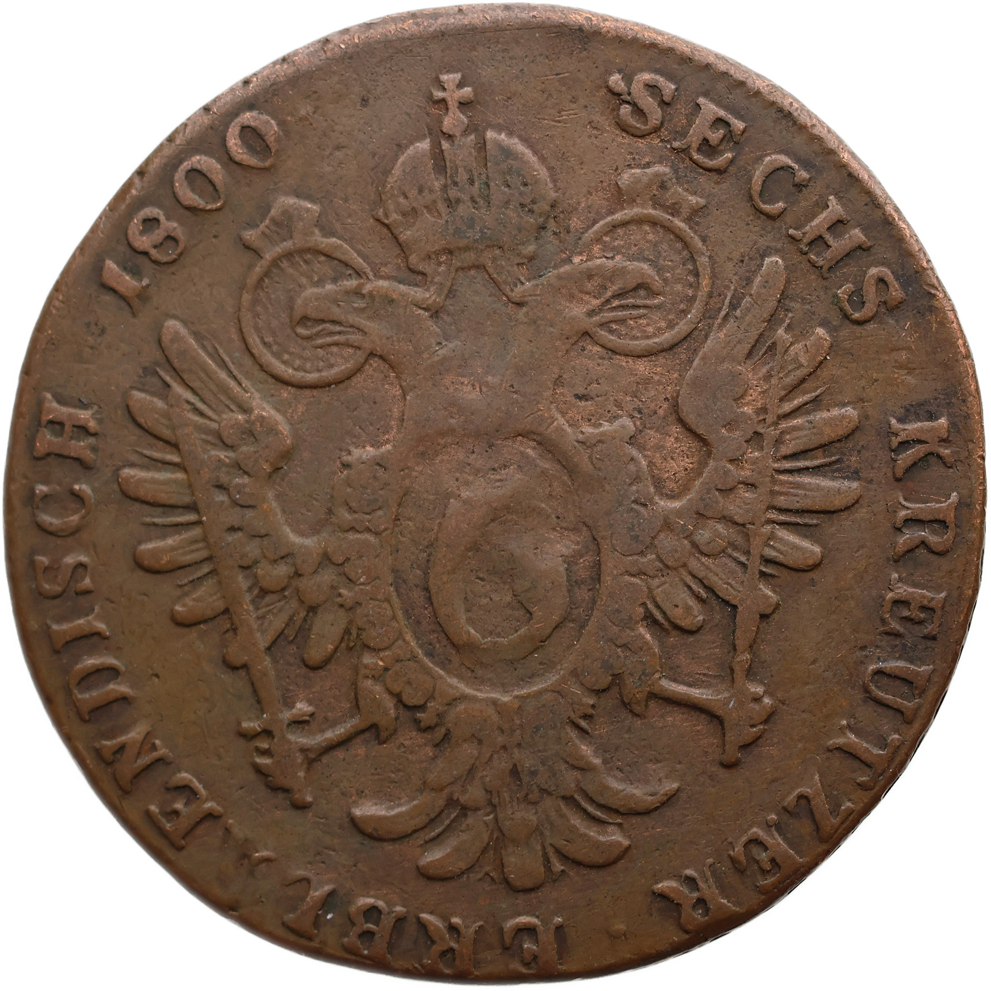 Reverse legend: SECHS · KREUTZER · ERBLAENDISCH · 1800 6
