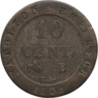 Reverse legend: NAPOLEON EMPEREUR 10 CENT. I Tiolier 1808