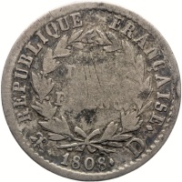 Reverse legend: EMPIRE FRANÇAIS. DEMI FRANC. 1808. D