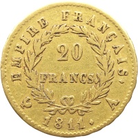 Reverse legend: EMPIRE FRANCAIS. 20 FRANCS. 1811. A