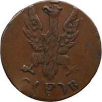 Obverse: Spread Eagle wearing crown, engravers initials on sides of (F).