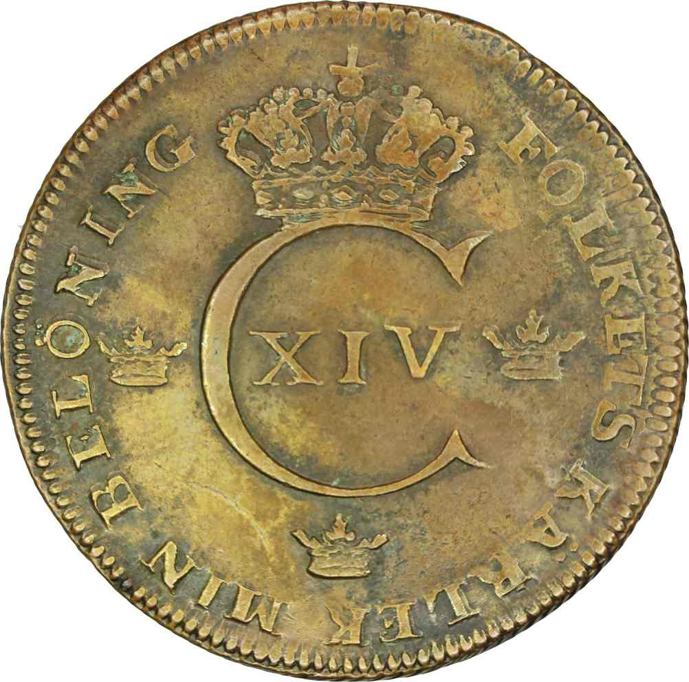 Obverse: Three crowns around monogram of Carl XIV Johan