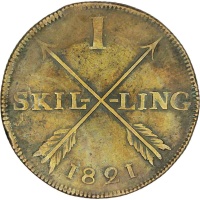 Obverse legend: “FOLKETS KÄRLEK MIN BELÖNING” (Translation: The People's Love - My Reward) Reverse: Crossed arrows Reverse legend: “1 SKIL LING 1821” Edge: Milled Denomination: one Skilling Country: Sweden Ruler: Karl XIV Johan Year: 1821 Mintage: 704,000 Metal: copper Weight approx.: 15.73g Diameter approx.: 33 mm Thickness: 2.2 mm Authenticity unconditionally guaranteed !