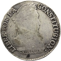 Obverse legend: LIBRE POR LA CONSTITUCION BOLIVAR