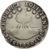 Reverse legend: REPUBLICA BOLIVIANA PTS.4S.1830.J.L