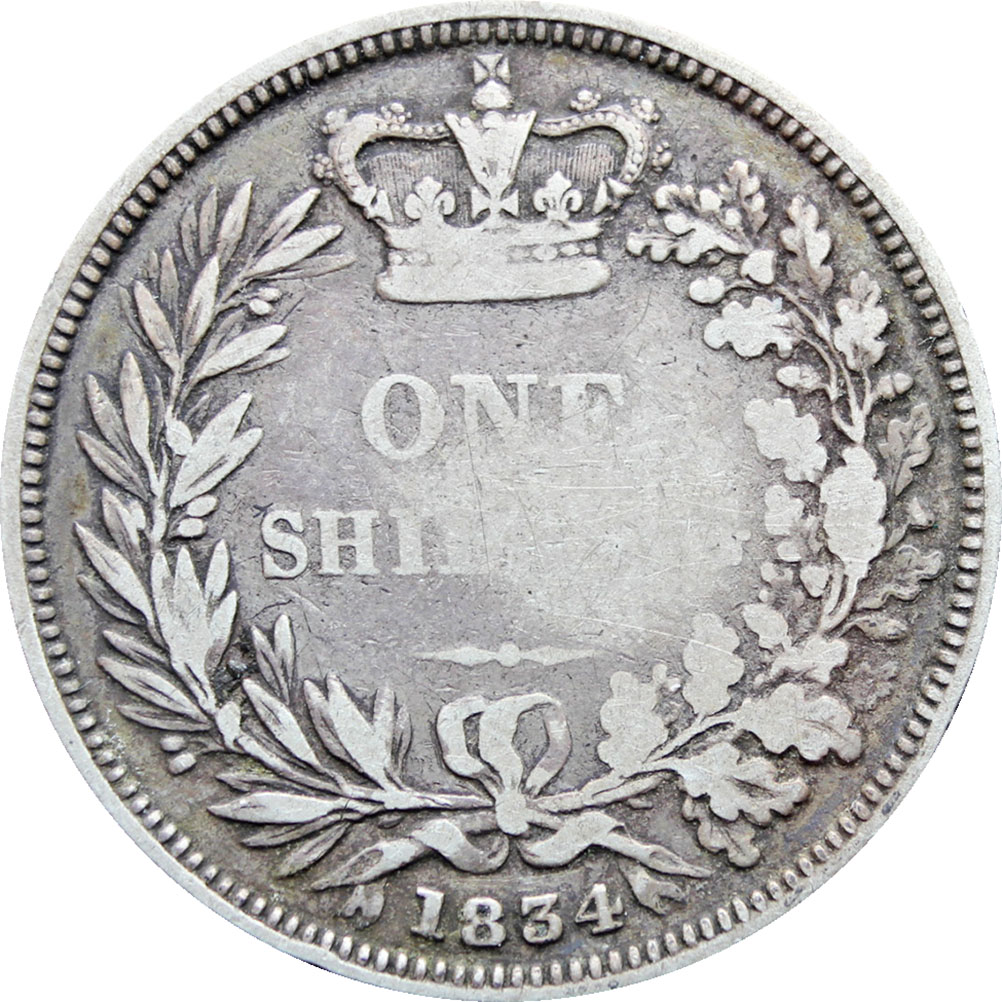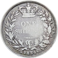 Reverse legend: “ONE SHILLING 1834”