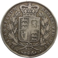 Obverse: Head of the Queen facing left wearing ribbon in hair; in small letters on neck truncation the artist's name W. WYON R.A.; around, VICTORIA DEI GRATIA; below, 1845