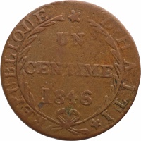 Obverse legend: REPUBLIQUE D'HAITI UN CENTIME 1846