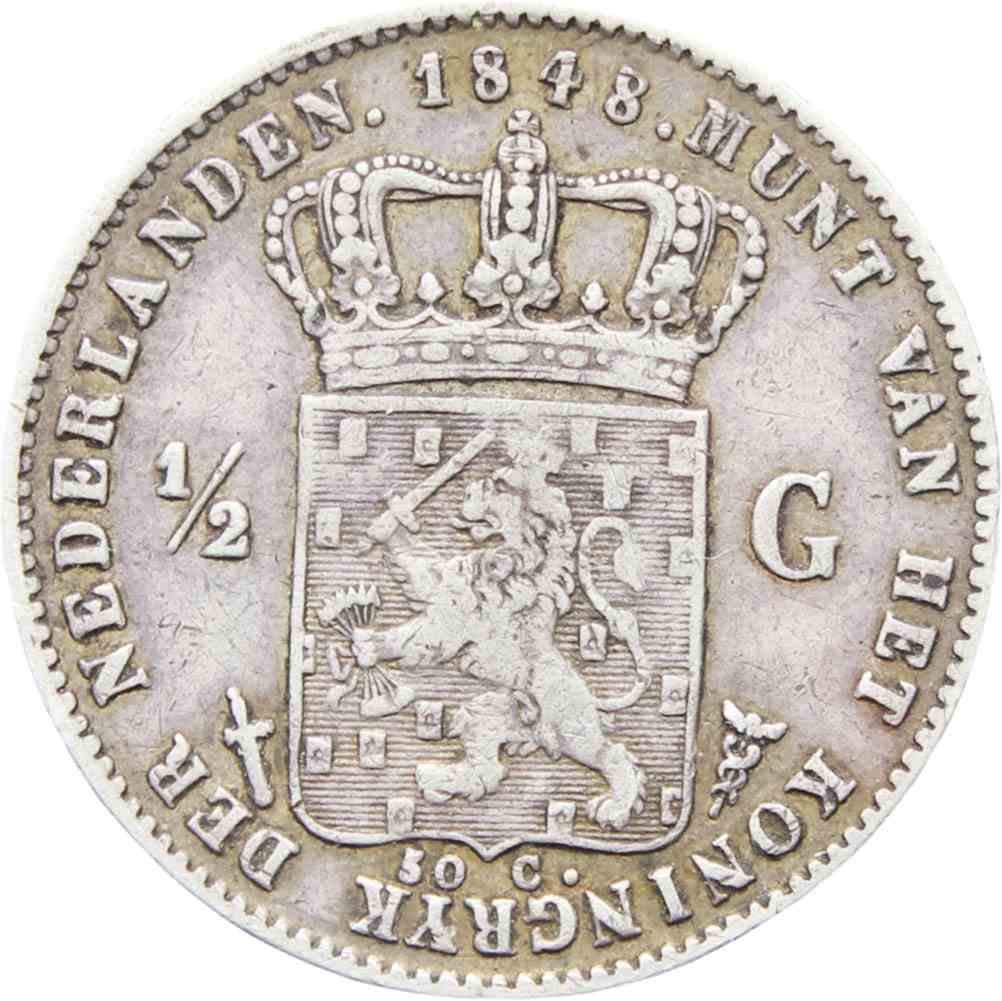 Reverse legend: “MUNT VAN HET KONINKRIJK DER NEDERLANDEN 1848”