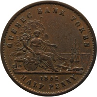 Reverse legend: QUEBEC BANK TOKEN 1852 HALF PENNY