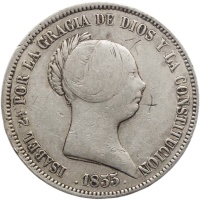 Obverse legend: ISABEL 2ª POR LA GRACIA DE DIOS Y LA CONSTITUCION 1855